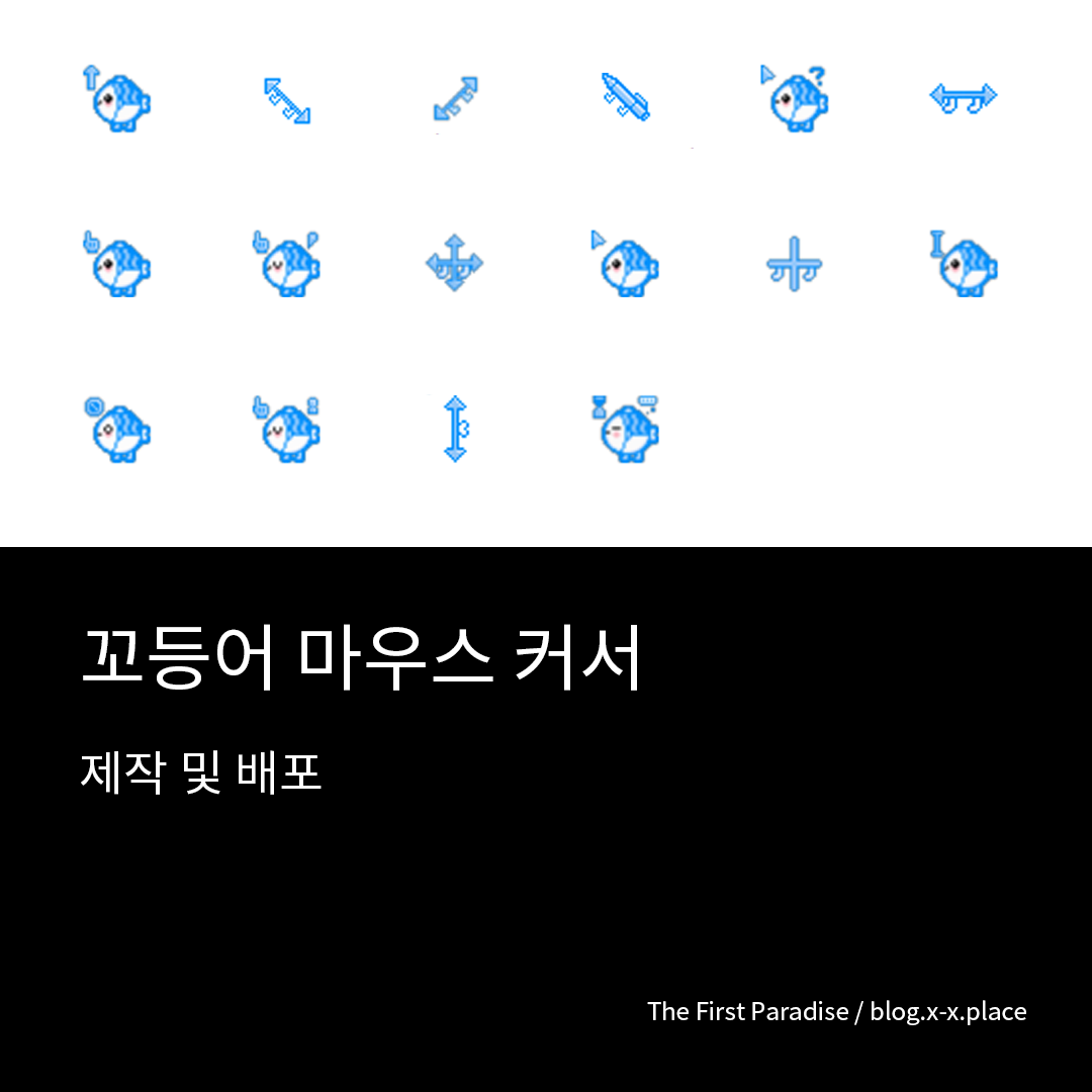 꼬등어가 너무 좋아서 마우스 커서까지 직접 만들었습니다..ㅎ1. 제작 과정기존에 평범한 커서를 쓰다가 헬로키티 마우스 커서가 땡겨서 썼었는데.. 책상 위에 있던 꼬등어 방향제가 눈에 아른거리더라구요.. 꼬등어 덕후로서 참을 수 없었기에 바로 삽 시간 안에 꼬등어 마우스 커서를 만드는 데 착수했어요.외형은 대충 이런 느낌인데 대부분은 꼬등어가 그려져있고 상태에 따라 표정에 변화도 줘봤습니다 :) 정확도를 요구하는 조절 커서나 필기 커서에는 꼬등어가 들어가기 애매해서 꼬등어 발이랑 꼬리만 추가해놨습니다.위 사진에서 보시다시피 처음부터 끝까지 손수 도트로 찍어서 제작했습니다. 도트의 한계 안에서 명암 꾸역꾸역 넣는 게 제일 고역이였어요.. 😵2. 배포파일 안의 ReadMe.txt를 잘 읽고 사용해주세요.혹시..