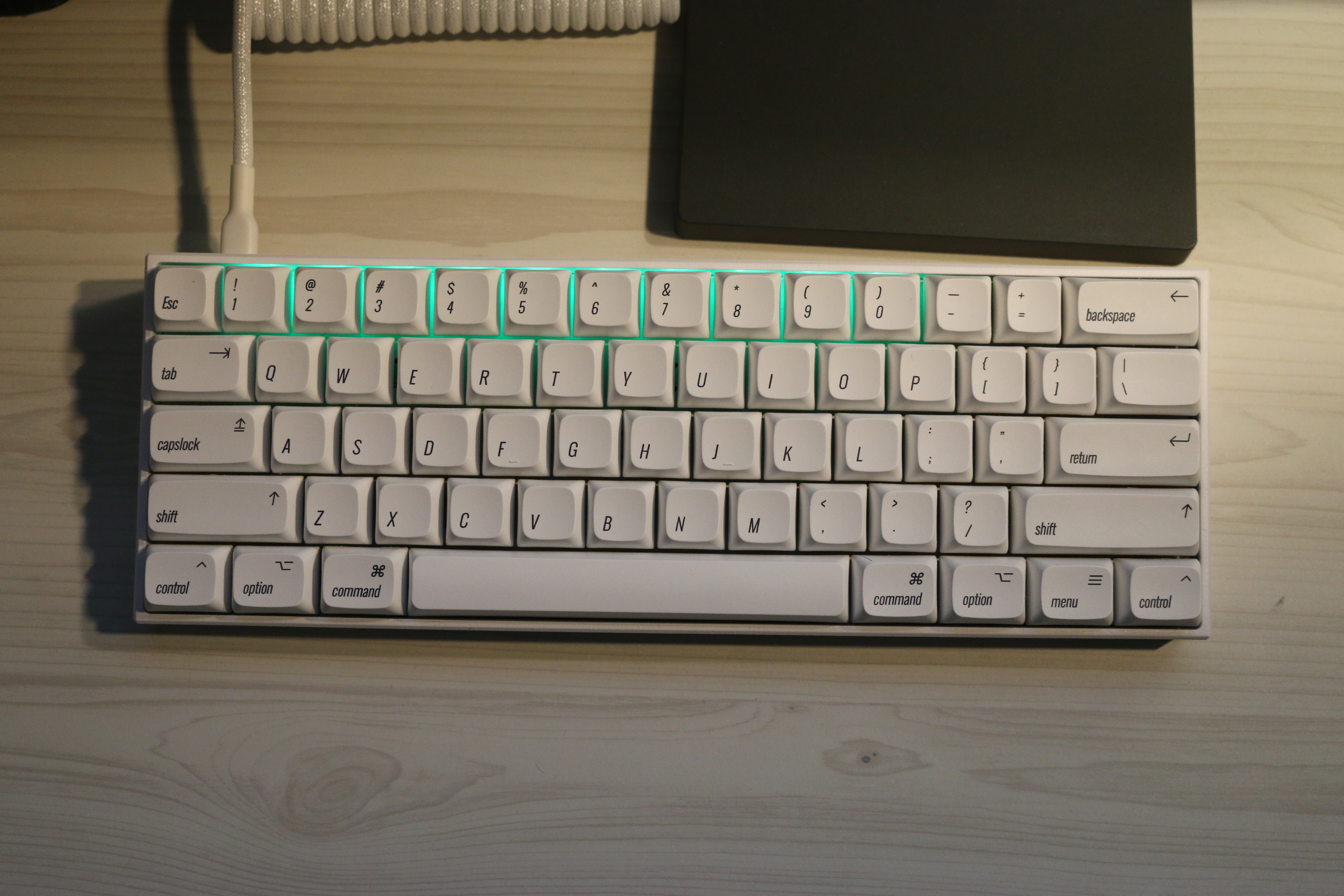 본체는 어떤 키캡과도 잘 어울리도록 뽑힌 것 같습니다. 그 중에서도 XDA 프로파일 키캡들이 가장 잘 어울릴 것 같아서 XDA 프로파일 애플 키캡으로 주문했습니다. 같은 곳에서 항공 케이블도 같이 싸게 팔길래 입문 겸 동시에 주문했습니다. 커스텀 키보드 기분 내는 것 같아서 만족감이 높습니다.