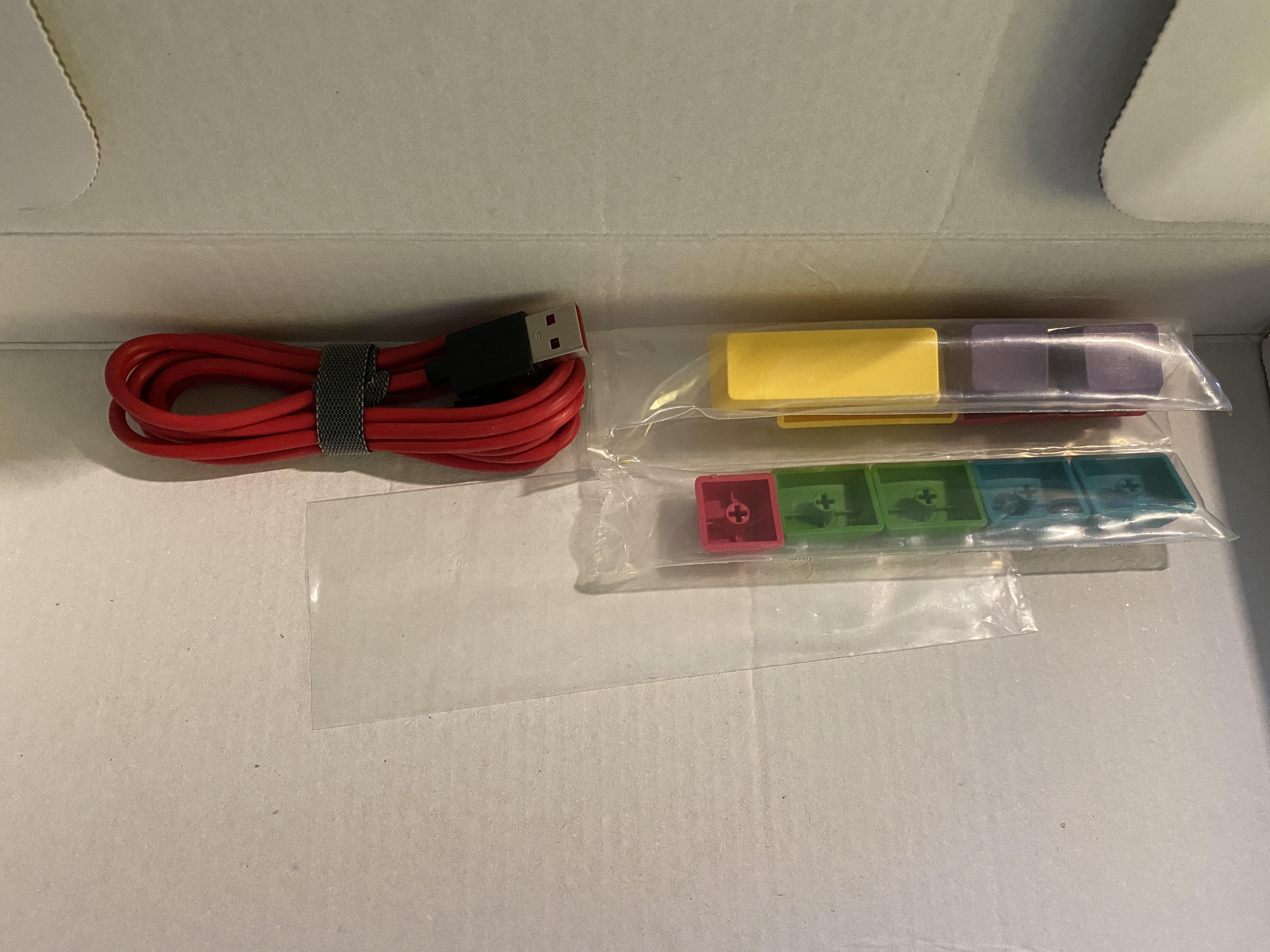 가성비 제품 치고 구성이 의외로 신선했습니다. 포인트 키캡과 키캡 리무버를 기본으로 제공해준다니.. 그러나 저는 키캡과 항공케이블을 따로 주문했기 때문에 사진의 구성품들을 직접 사용해 보지는 못했습니다.